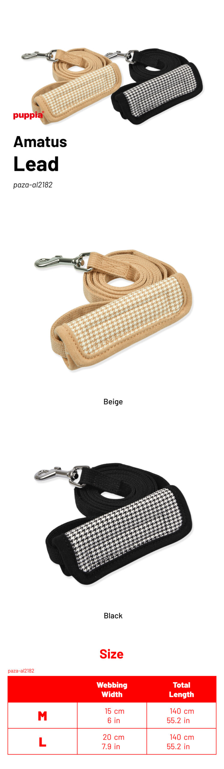 Guinzaglio Puppia sicuro e alla moda con motivo pied de poul. Abbinabile alle pettorine A/B