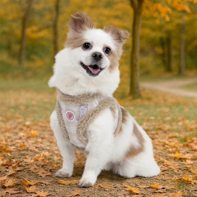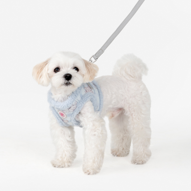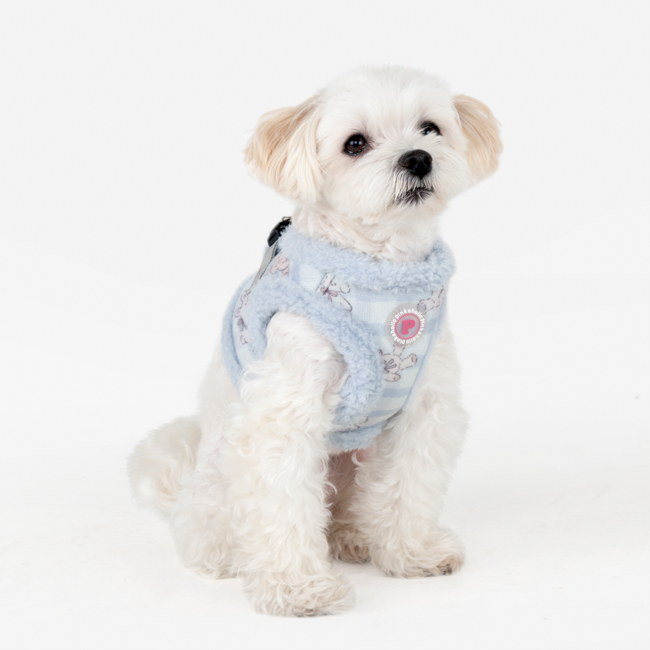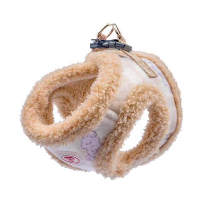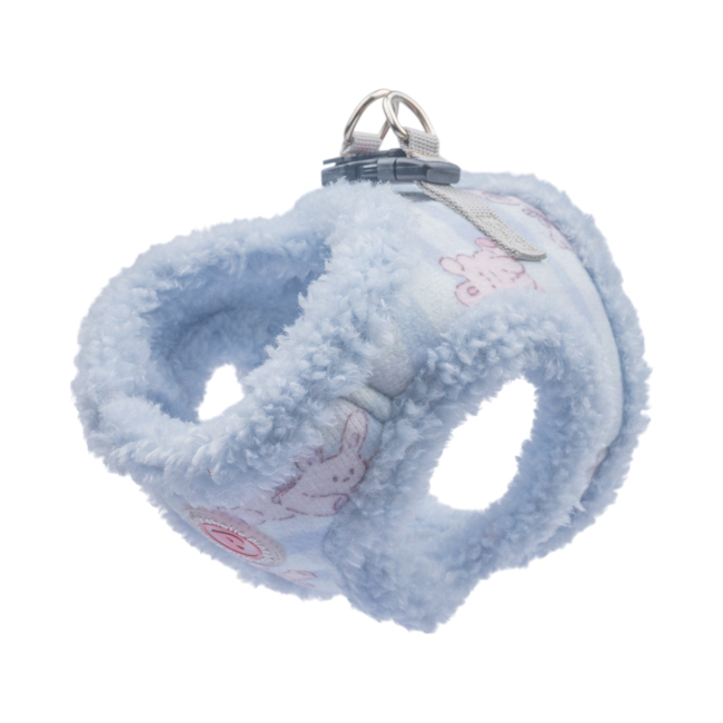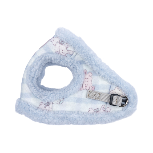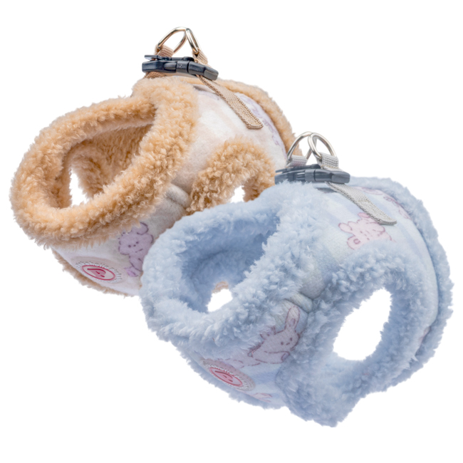 Pettorina sicura e alla moda a gilet invernale (modello B), motivo a coniglietto e tinta unita, chiusura con fibbia e velcro.