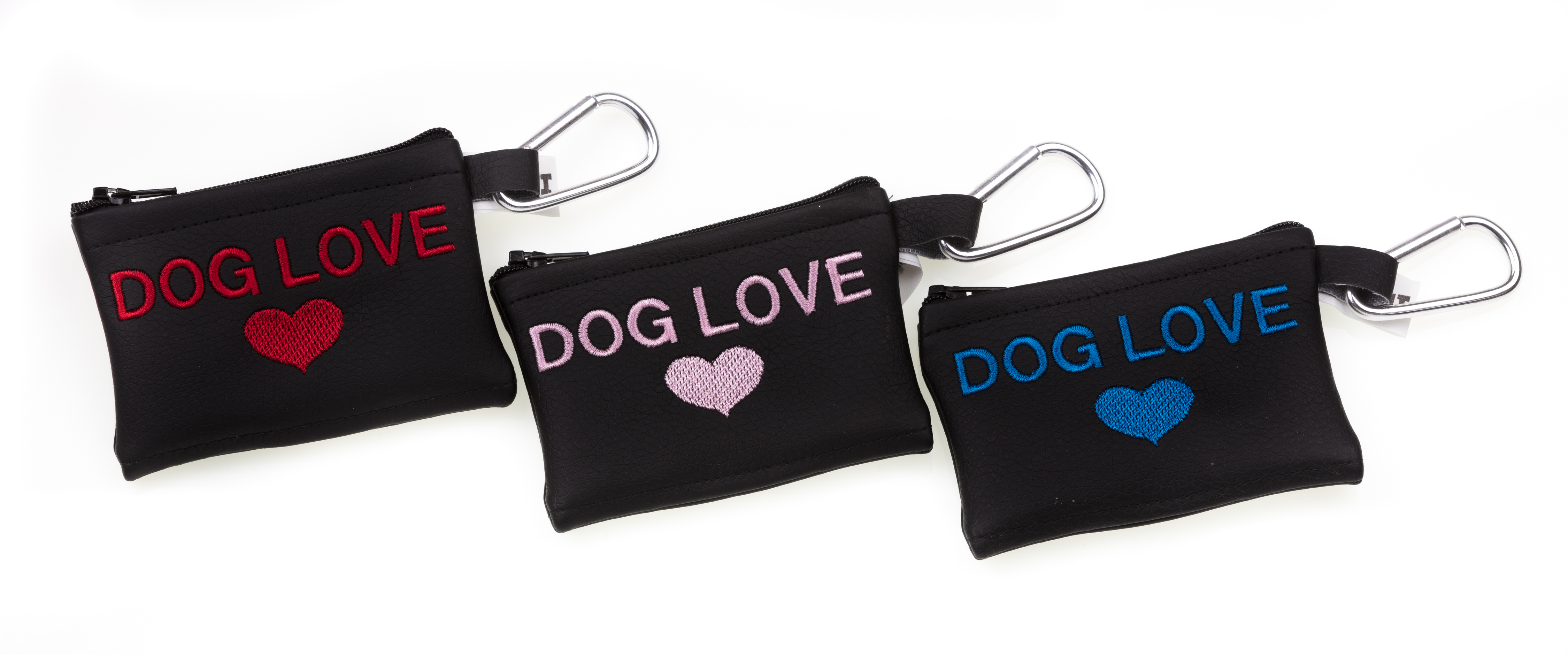 Bellissimo porta-sacchetti con ricamo. Con pratica zip e moschettone per agganciare al guinzaglio. Made in Italy!